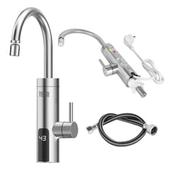 ----------GŁÓWNE CECHY----------Montaż na blacie / zlewieWyświetlacz LED pokazujący temperaturęRegulacja kąta ustawienia wylewki do 360°Przełącznik kontrolujący przepływ ciepłej i zimnej wodyZabezpieczenie przez przegrzaniem (110°C)----------DANE TECHNICZNE----------Wydajność przy (delta t=25°C): 2 l/minWydajność przy (delta t=35°C): 1,3 l/minPrzekrój przewodu zasilającego: 3 x 1,5 mm2Średnica przyłącza wody: G 1/2”Ciśnienie robocze: 0,04 – 0,6 MPaDługość wylewki: 400 mmMateriał (grzałka, obudowa): stal nierdzewna 304Stopień ochrony: IPX4Klasa ochronności: IPrąd znamionowy: 13,6 AMoc znamionowa: 3000 WZasilanie: 220 – 240 V~, 50/60 Hz----------PARAMETRY FIZYCZNE----------Waga: 1,1 kgWymiary: 445 x 57 x 100 mmDługość przewodu: 1,2 m