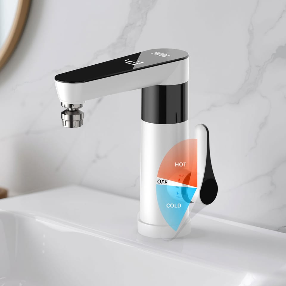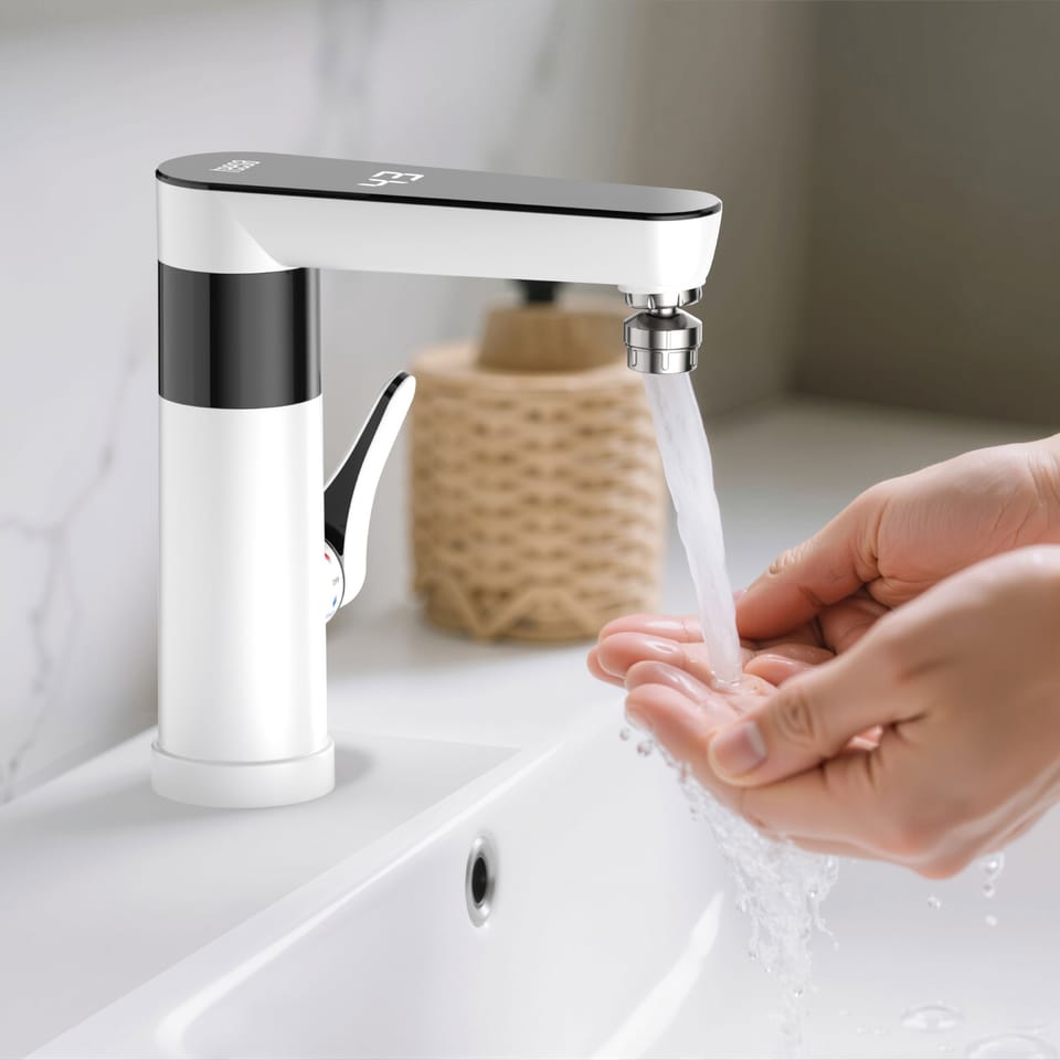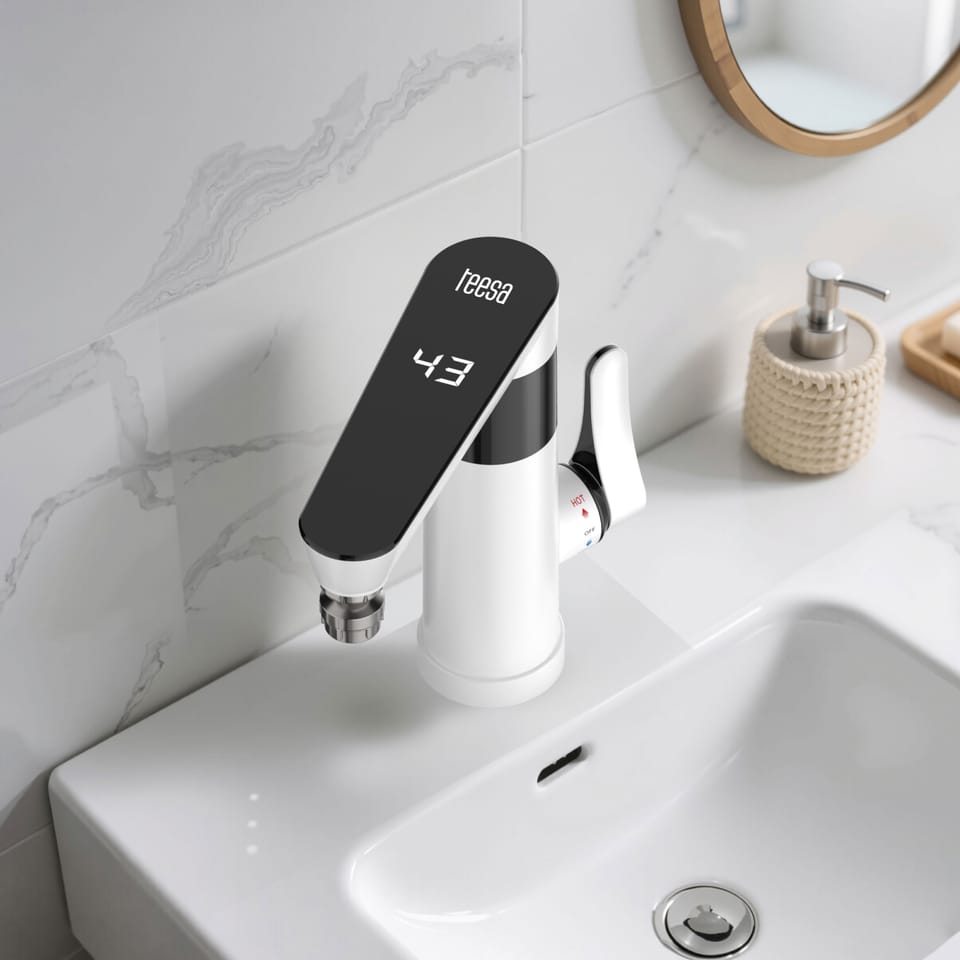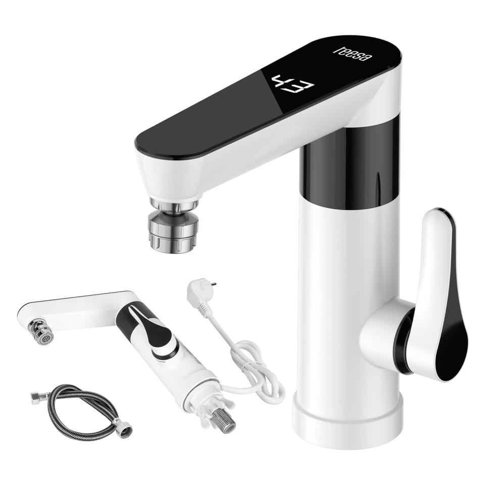 Przepływowy podgrzewacz wody - bateria stojąca biała