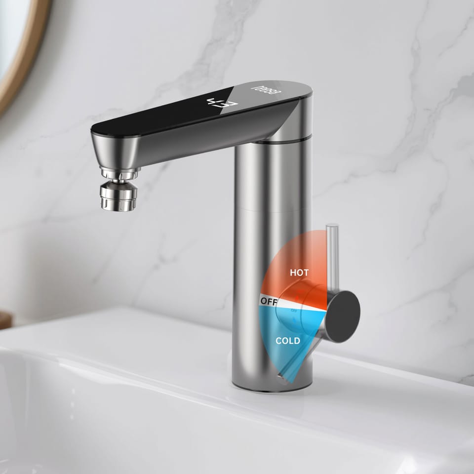 ----------GŁÓWNE CECHY----------Montaż na blacie / zlewieWyświetlacz LED pokazujący temperaturęRegulacja kąta ustawienia wylewki do 120°Dysza z przegubem kulkowym pozwalającym na pełną kontrolę strumieniaPrzełącznik kontrolujący przepływ ciepłej i zimnej wodyZabezpieczenie przez przegrzaniem (110°C)----------DANE TECHNICZNE----------Wydajność przy (delta t=25°C): 2 l/minWydajność przy (delta t=35°C): 1,3 l/minPrzekrój przewodu zasilającego: 3 x 1,5 mm2Średnica przyłącza wody: G 1/2”Ciśnienie robocze: 0,04 – 0,6 MPaDługość wylewki: 200 mmMateriał (grzałka, obudowa): stal nierdzewna 304Stopień ochrony: IPX4Klasa ochronności: IPrąd znamionowy: 13,6 AMoc znamionowa: 3000 WZasilanie: 220 – 240 V~, 50/60 Hz----------PARAMETRY FIZYCZNE----------Waga: 1,1 kgWymiary: 285 x 60 x 105 mmDługość przewodu: 1,2 m