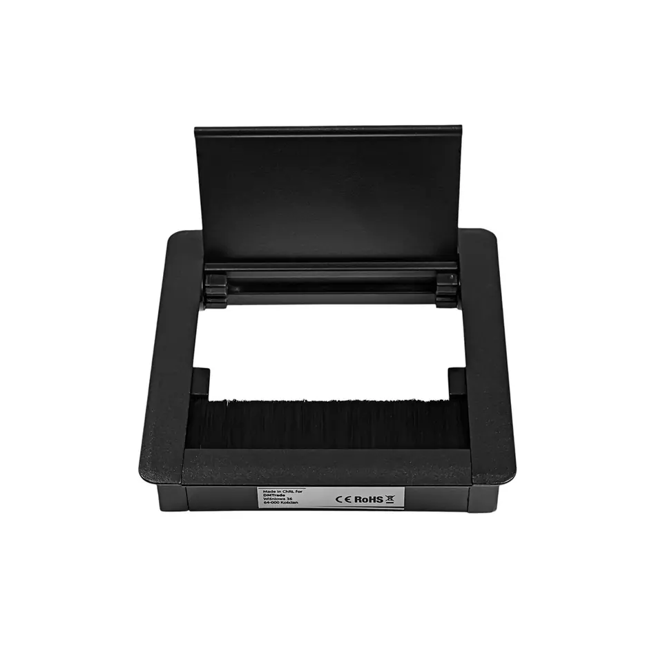 Przelotka kablowa Spacetronik, która idealnie nadaje się do przeprowadzenia wszelkich kabli podłączonych do PC lub innych urządzeń przez blat biurka, stołu, meble i wiele innych. Skutecznie porządkuje kable i zapobiega niepożądanym przetarciom izolacji przewodów przez ostre krawędzie mebli. Posiada pokrywę oraz szczotkę przeciwkurzowo-maskującą. Wysokiej jakości przepust kablowy wykonany z aluminium, w kolorze czarnym. SPS-G01B nadaje się do mebli biurowych i nie tylko. Z uwagi na jego designerski wygląd, przelotka będzie pasować także do wyposażenia kuchni, warsztatu, czy pokoju dziennego i służyć jako estetyczne wykończenie.