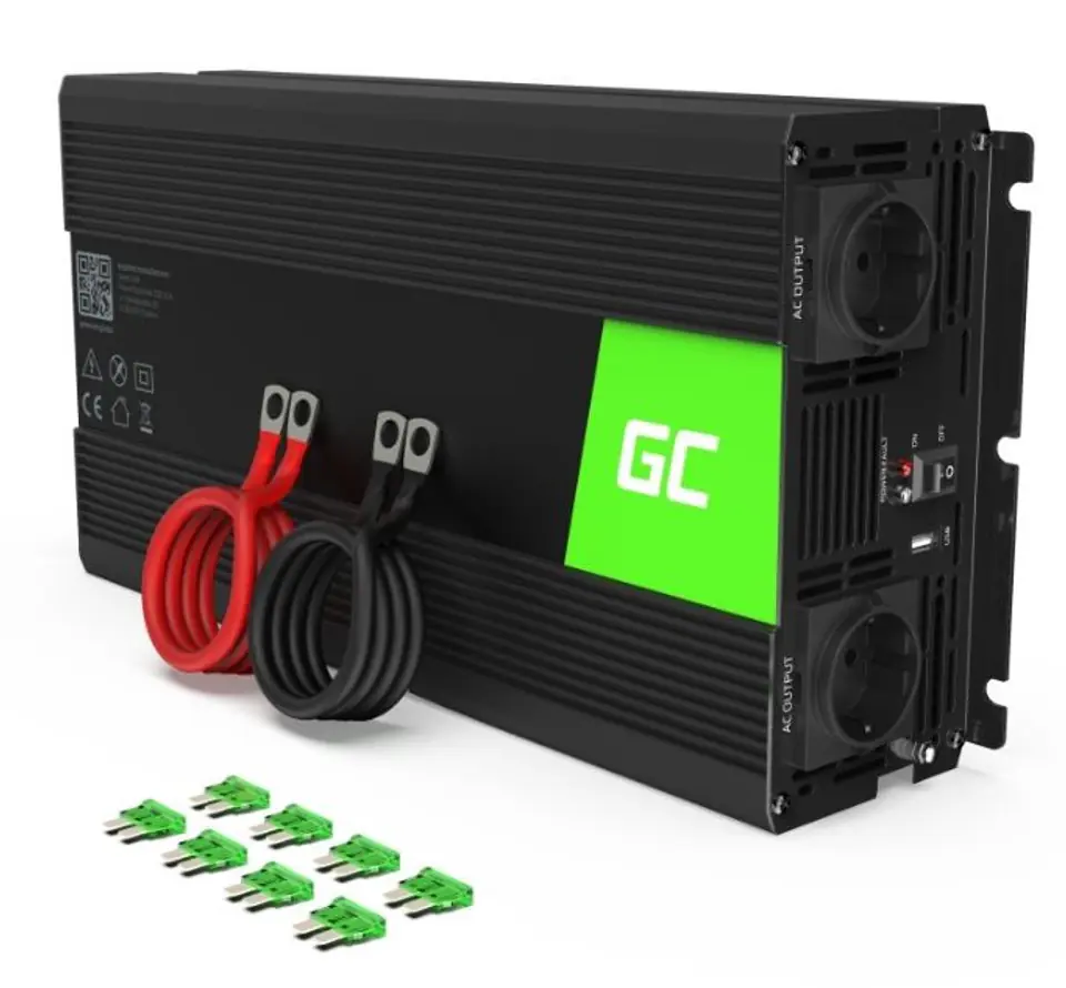 Przetwornica samochodowa Green Cell to urządzenie, które zmienia napięcia akumulatora 12V DC na 230V, dzięki czemu możemy korzystać w trasie z każdego urządzenia domowego. Model ten przeznaczony jest do instalacji o napięciu . Urządzenie zapewnia czysty prąd sinusoidalny, który pozwala na użycie wszystkich typów urządzeń.