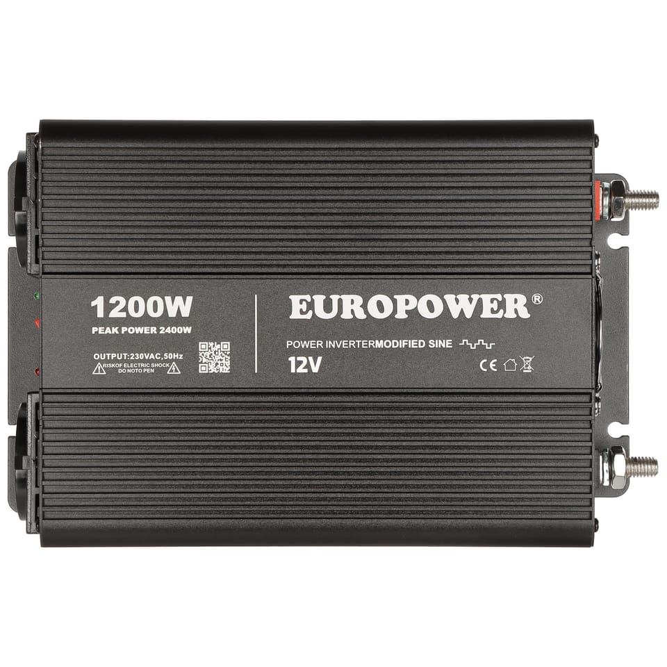 Przetwornica napięciowa marki EUROPOWER® to urządzenie zasilające, przekształcające prąd stały DC (np. z akumulatora), na prąd zmienny 230V AC.