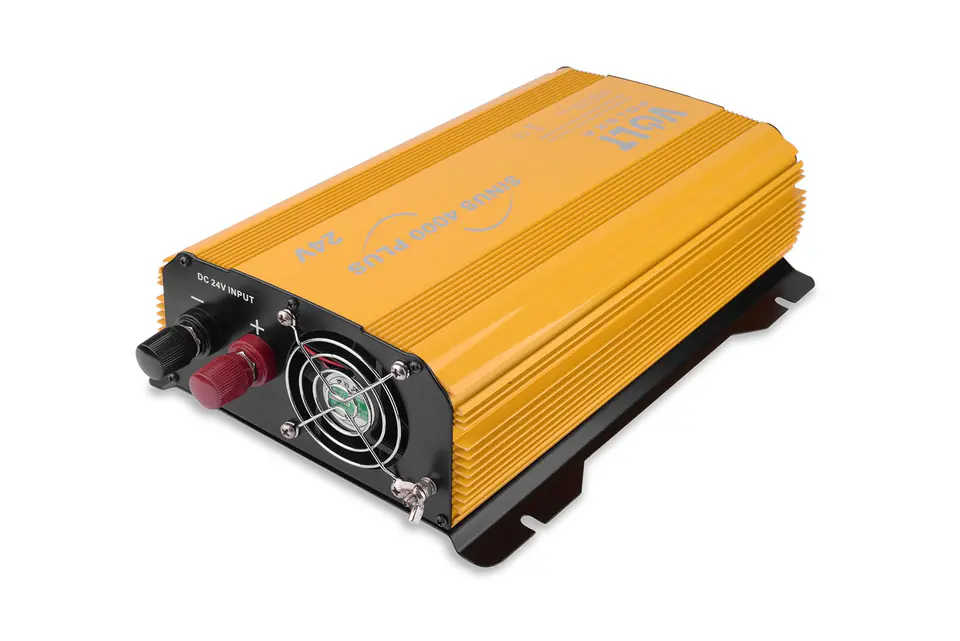 Elektroniczna przetwornica SINUS PLUS 4000 24V służy do zasilania urządzeń elektrycznych wymagających napięcia przemiennego 230V z akumulatorów i instalacji samochodowych o napięciu stałym 24V. Doskonale sprawdza się w pojazdach (np. kampery) i w miejscach gdzie nie ma możliwości bezpośredniego podłączenia do sieci energetycznej. Najważniejsze cechy:1.Przetwornica typu czysty SINUS wytwarza na wyjściu napięcie o „przebiegu sinusoidalnym”, takie samo jak w sieci energetycznej. Dzięki temu, może zasilać urządzenia o charakterze indukcyjnym m.in. elektronarzędzia siłowe, sprężarki powietrza, klimatyzatory, lodówki, zamrażarki etc.2.Wersja PLUS oferuje dodatkowo panel sterowania wraz z przewodem, który można podłączyć do przetwornicy i uruchamiać ją zdalnie za pomocą przycisku znajdującego się na panelu3.Możliwość podłączenia paneli fotowoltaicznych poprzez regulator napięcia MPPT lub PWM Jakie urządzenia zasila SINUS PLUS 4000 24V?1.Kampery2.Lodówki, zamrażarki3.Klimatyzatory4.Urządzenia RTV np. telewizory, konsole, głośniki etc.5.Oświetlenie LED6.Automatyka domowa i urządzenia typu smart home7.Elektronarzędzia np. wiertarki, szlifierki, kątówki etc.8.Urządzenia AGD np. pralki, mikrofalówki etc.9.Pompy CO