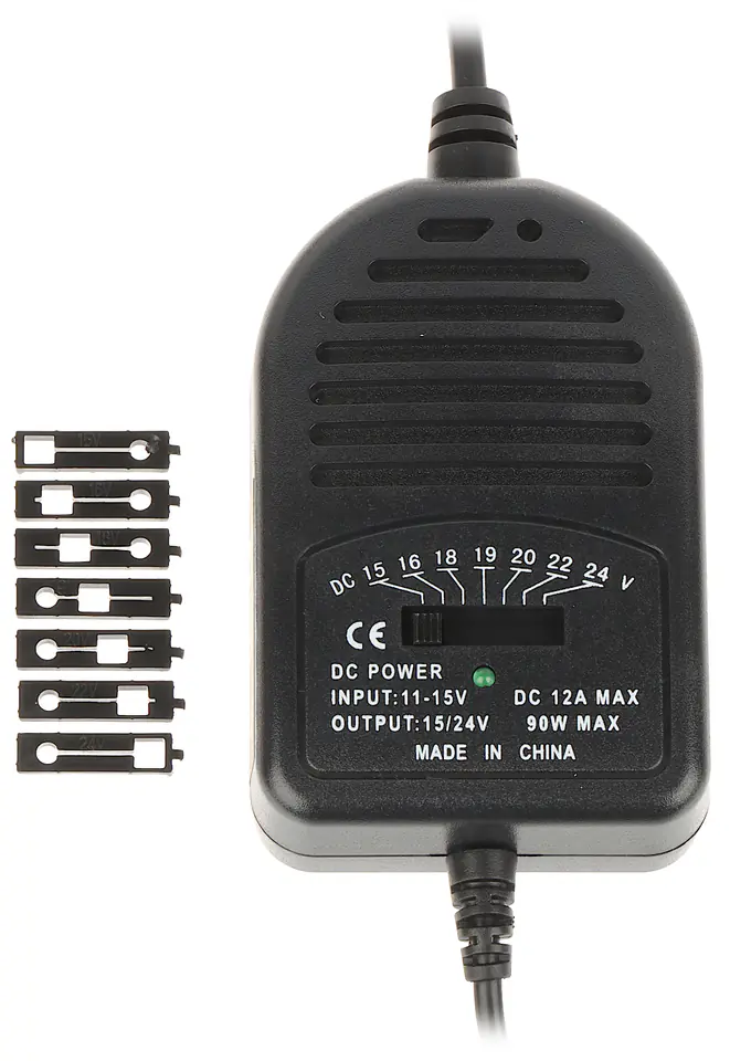 | Napięcie wyjściowe: | 15 V, 16 V, 18 (18.5) V, 19 (19.5) V, 20 V, 22 V, 24 V DC - wybierane przełącznikiem |