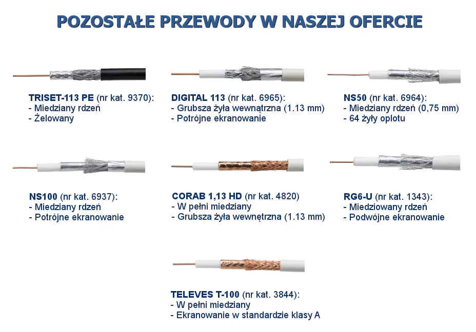 - Dielektryk: 4.8 ± 0.02 mm PE spieniony fizycznie azotem (N)
