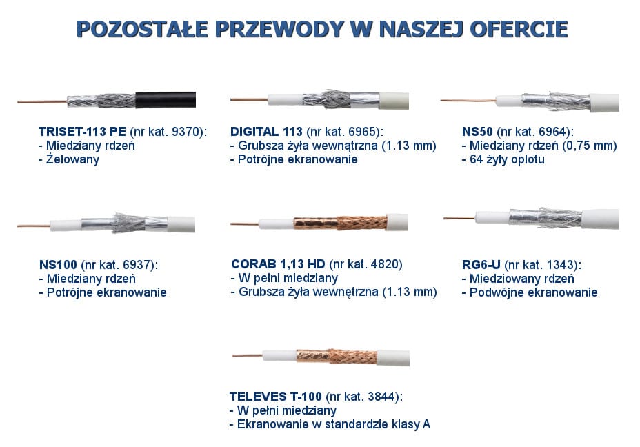 Radio, telewizja, anteny satelitarne, telewizja kablowa, telewizja cyfrowa. Zgodność z dyrektywą ROHS.