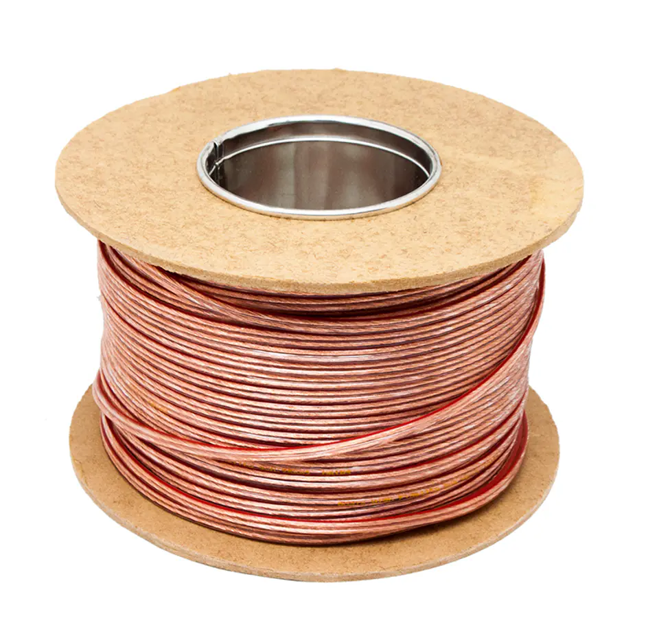 Przewód głośnikowy płaski (p) o żyle wielodrutowej i izolacji polwinitowej przeźroczystej. Jedna z żył oznaczona kolorem czerwonym. Stosowane do wewnętrznych połączeń, do podłączenia wzmacniacza z głośnikami, itp. Przewód nie nadaje się do podłączeń elektrycznych.