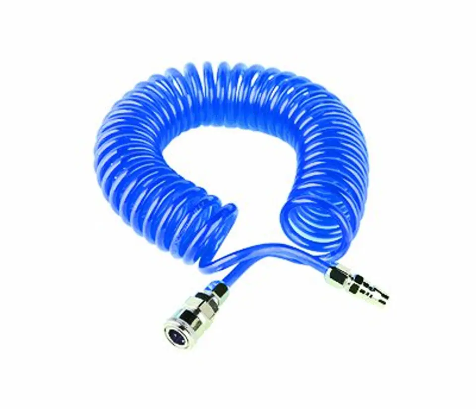 Przewód wykonany z poliuretanu, bardzo wytrzymały i elastyczny.Zaopatrzony w szybkozłączki, które umożliwiają łatwe podłączenie wielu narzędzi, m.in. szlifierek kątowych, kluczy udarowych, pistoletów do pompowania lub przedmuchiwania. Parametry:* materiał: poliuretan wzmocniony oplotem* długość przewodu: 10 m* przekrój przewodu (zew x wew): 12 x 8 mm* ciśnienie robocze: 0-15 bar* ciśnienie rozrywające: 60 bar* zakres temperatur: -40°C do +80°C* typ: spiralny