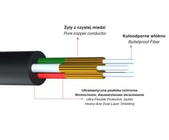 | Wybrane cechy: | Pozłacane złącze zapobiega utlenianiu się styków Żyły wykonane z czystej miedzi Solidne wykonanie |