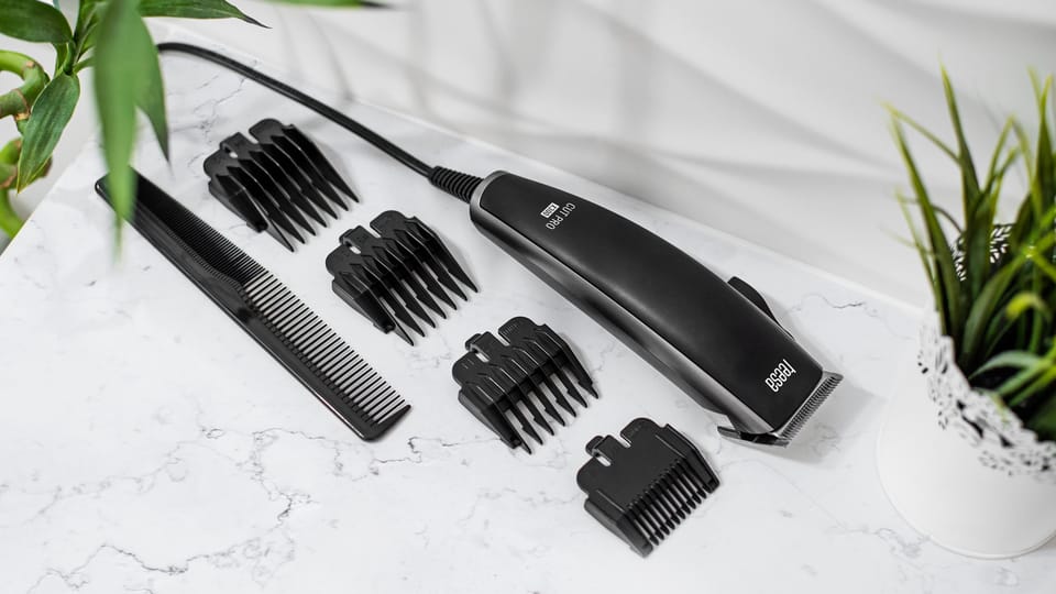 ----------GŁÓWNE CECHY----------4 nasadki grzebieniowe (3, 6, 9, 12 mm)Nożyk ze stali nierdzewnejUchwyt do zawieszenia----------DANE TECHNICZNE----------Szerokość nożyka: 43 mmUstawienia długości: 0,8 mm, 1,6 mm, 2,5 mm, 3,3 mmPoziom głośności: =Moc: 7 WZasilanie: 230 – 240 V~; 50 HzWaga: 395 gWymiary: 169 x 61 x 32 mmDługość przewodu: 1,8 mW zestawie: nakładka ochronna, 4 nasadki grzebieniowe, grzebień, nożyczki, pędzelek do czyszczenia, olejek do konserwacji