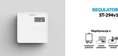Regulator ST-294 w wersji v1 ma wbudowany styk beznapięciowy, a z urządzeniem grzewczym komunikuje się poprzez przewód.