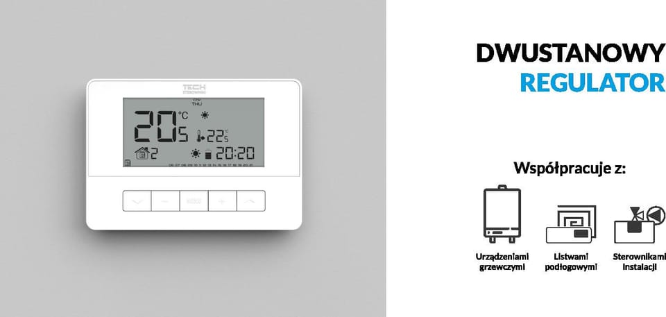 - sterowanie temperaturą pokojową +/- z dokładnością 0,2°C