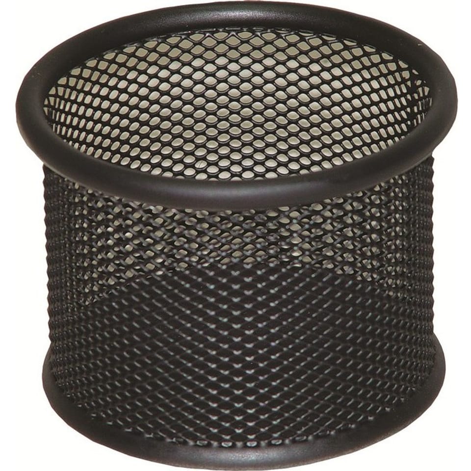 * pojemnik na przybory z metalowej siateczki powlekanej lakierem * okrągły * wymiary: 90x68mm * kolor czarny