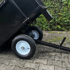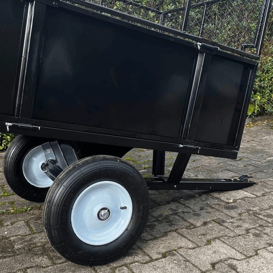 Dzięki ręcznej wywrotce rozładunek jest szybki i wygodny, a terenowe koła zapewniają stabilność nawet na nierównym terenie. Solidna stalowa konstrukcja oraz malowanie proszkowe gwarantują długą żywotność i odporność na warunki atmosferyczne.