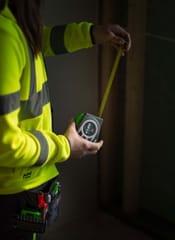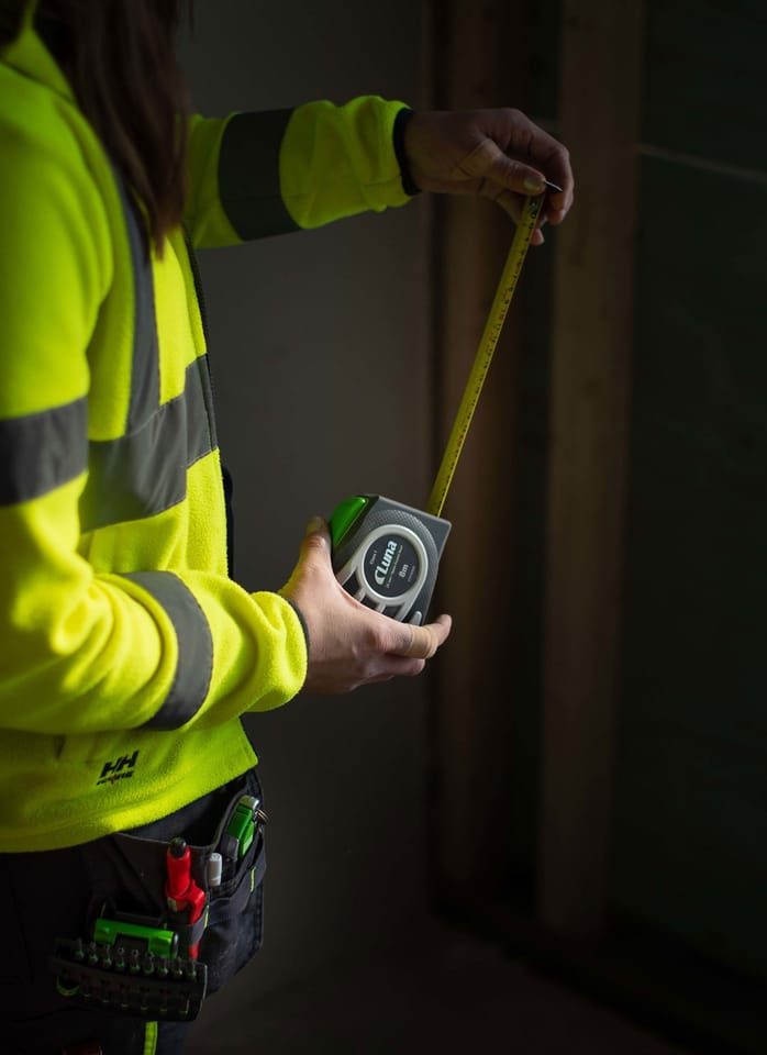 Przymiar taśmowy o bardzo wysokiej jakości, z funkcją „Auto-lock”. Obudowa zamknięta, z tworzywa ABS odpornego na udary i niskie temperatury. Prosta tylna krawędź obudowy, do pomiarów wewnętrznych Gumowe detale zwiększają komfort pracy i pewność chwytu. Taśma stalowa z żółtą, bezodblaskową, podwójną powłoką poliamidową, zapewniającą bardzo dobrą ochronę przed zużyciem. Na odwrotnej stronie taśmy podziałka z kreskami co 30/45/60 cm, ułatwiająca rozmieszczanie belek konstrukcyjnych. Ruchomy końcowy języczek zaczepowy i zaczep na pas. Najwyższa I klasa tolerancji. Możliwość podłączenia zebezpieczenia przed upadkiem narzędzia.
