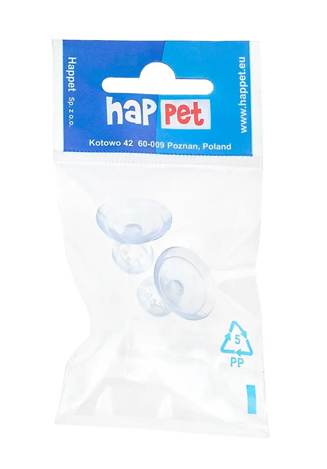 Przyssawki A004 Silikonowe przyssawki doskonale trzymają się szyb akwarium, są transparentne przez co łatwo wtapiają się w tło i nie zaburzają estetyki. Wykonane są z miękkiego i eleastycznego tworzywa z dodatkiem silikonu. Dane techniczne: Średnica: 2,5 cm Średnica otworu: 7 mm