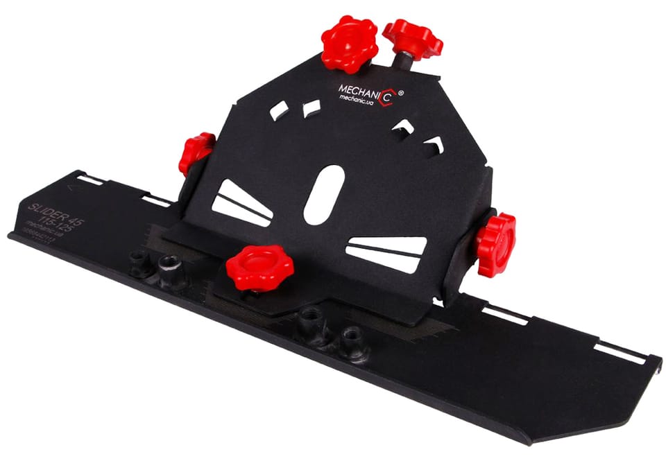 Jednakże bizotowanie płytek o 45 stopni jest procesem dość czasochłonnym. Nowa wersja 2.0 przystawki Slider 45 do szlifierek kątowych 115-125. Teraz cięcie płytek pod kątem 45 stopni jest jeszcze łatwiejsze i prostsze!