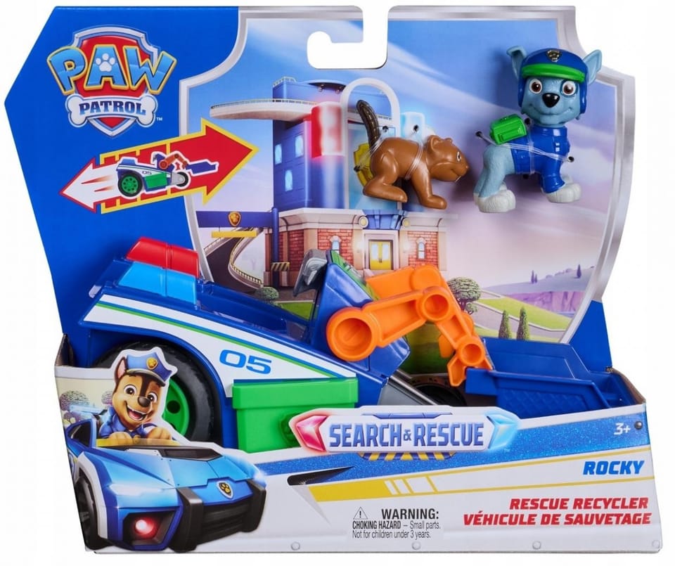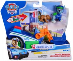 Przenieś do domu ekscytujący świat Psiego Patrolu dzięki pojazdowi tematycznemu Search & Rescue: Śmieciarka Recyklingowa Rockyego! Ten pełen akcji zestaw zawiera zabawkowy pojazd o długości ok. 15 cm oraz 2 figurki, w tym Rockyego o wysokości ponad 5 cm, ubranego w mundur poszukiwawczo-ratowniczy i gotowego do akcji.