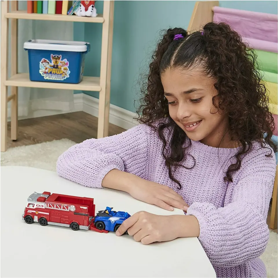 W zestawie jeden pojazd ratowniczy Chase w skali 1:55, który można załadować bezpośrednio do wozu strażackiego!