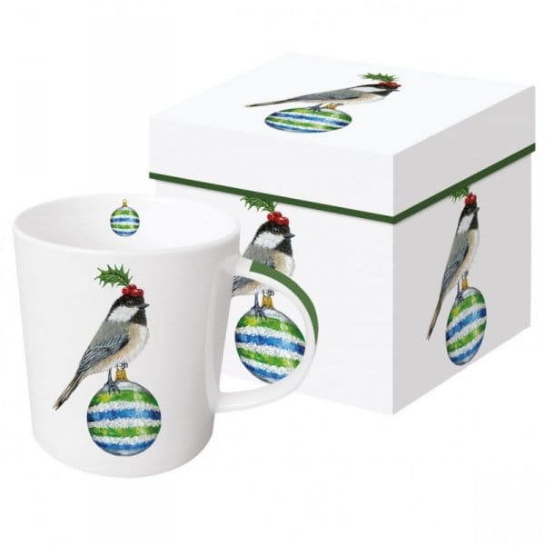 Kubek porcelanowych o pojemności 350 ml z motywem uroczego ptaszka siedzącego na kolorowej bombce. Wykonany z porcelany charakteryzującej się wyjątkową elegancją i wytrzymałością. Poręczne ucho gwarantuje stabilny uchwyt podczas picia. Zapakowany w ozdobne pudełko, o tym samym motywie. To doskonały pomysł na upominek dla najbliższych, przyjaciół i znajomych.Pojemność: 350 mlKolor: wielokolorowyMateriał: porcelanaMycie w zmywarce: takMikrofalówka: takProducent: Paper Products Design...
