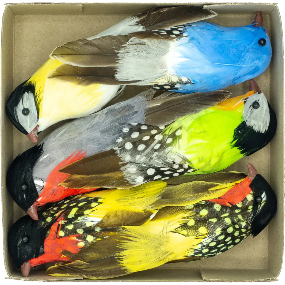 Ptaszki dekoracyjne w rozmiarze 13 cm z klipsem ułatwiającym przyczepienie. Display zawiera 6 szt. mix wzorów