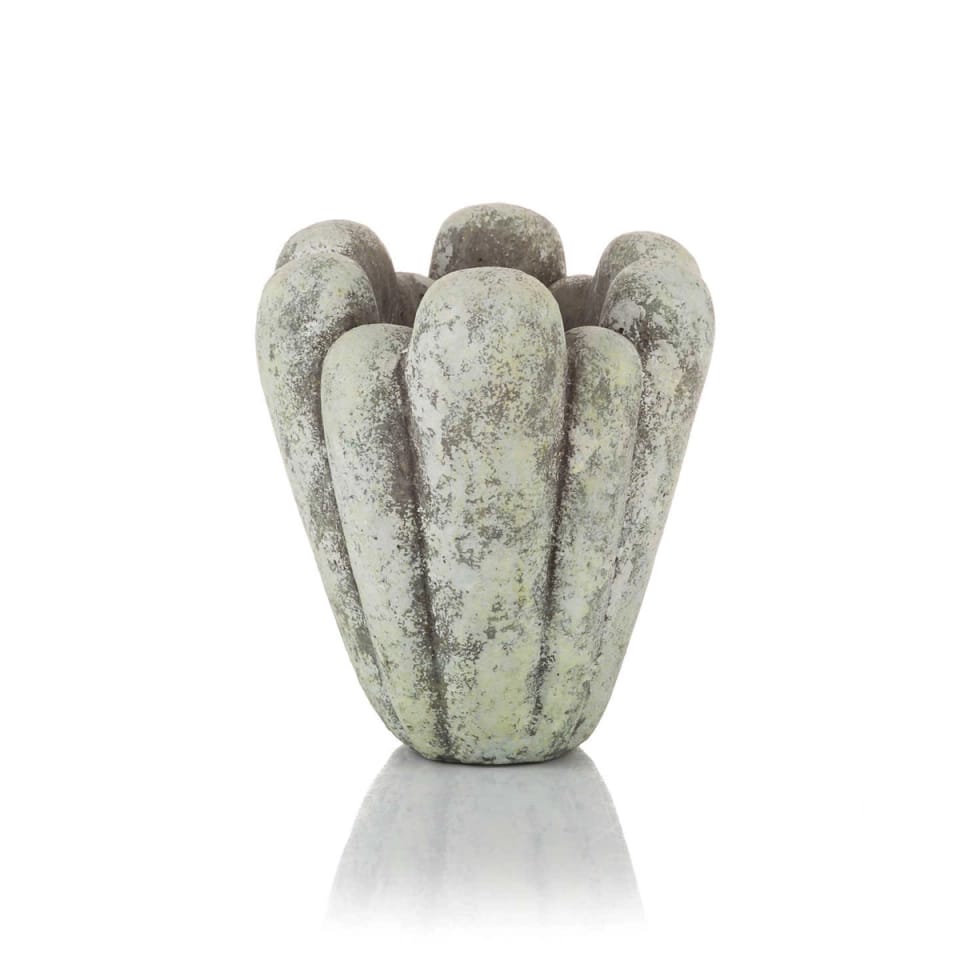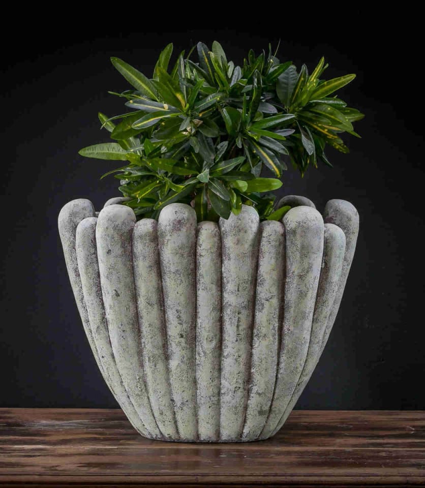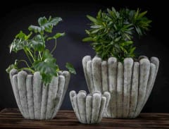 OPIS:Dekoracyjna osłona doniczki z serii MINTER - S, marki PTMD została wykonana z cementu z wykończeniem w odcieniach szarości. Organiczny design z pionowymi wypustkami nadaje tej doniczce wyjątkowy wygląd. Idealny do prezentacji roślin w nowoczesnych koncepcjach wnętrz. Nadaje się do stosowania wewnątrz lub na zewnątrz pod zadaszeniem. Osłona bez otworu w dnie.