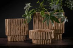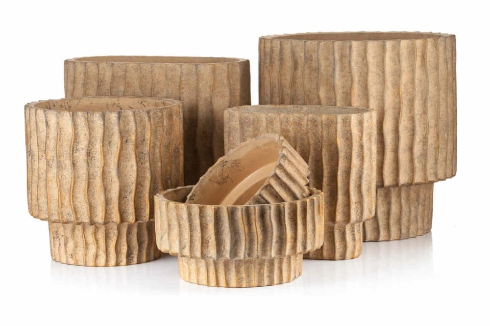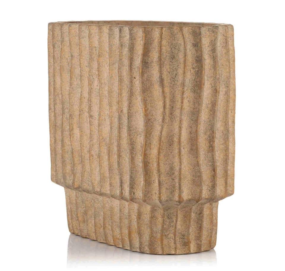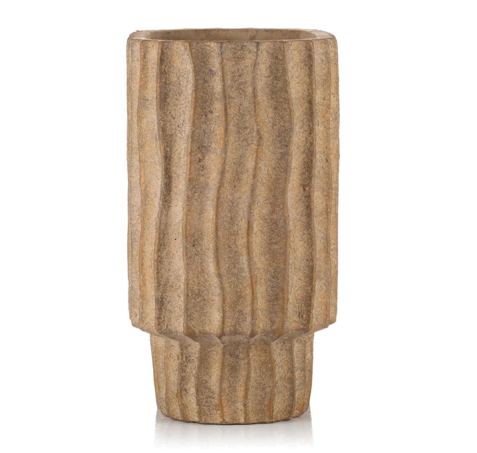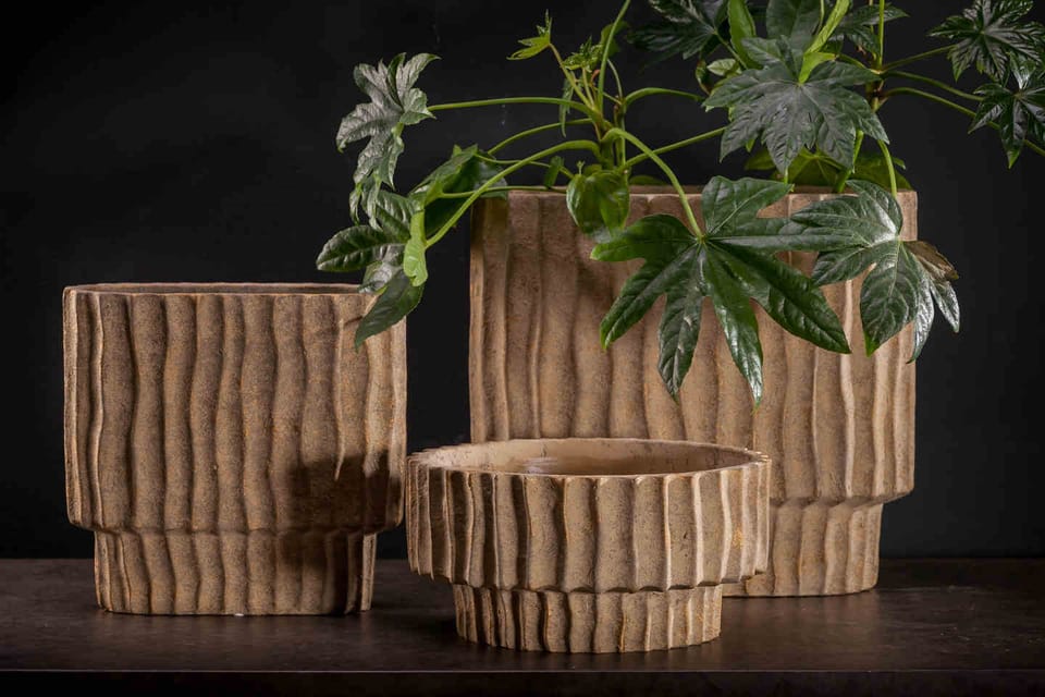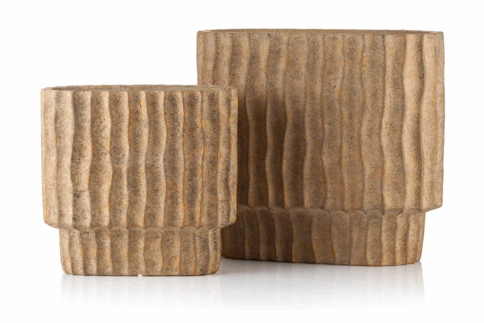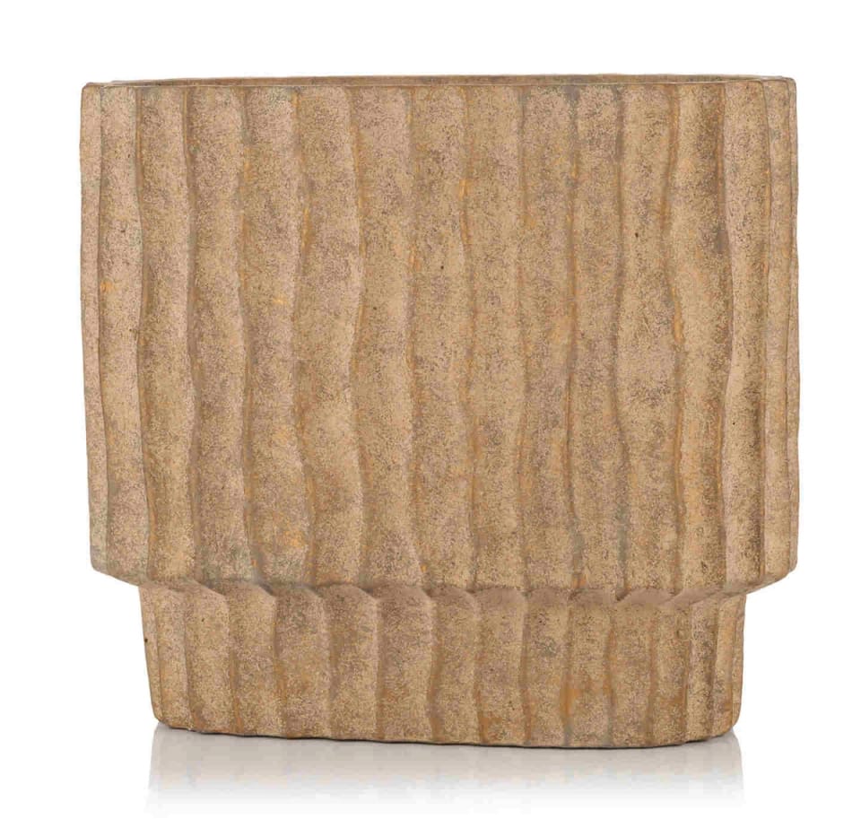 OPIS:Osłona donicy (owalna) MITTY-L, marki PTMD wykonana z cementu w ciepłym brązowym kolorze, wykończona żebrowanym wzorem. Wyrazista zewnętrzna powierzchnia osłony, nadaje solidny i naturalny wygląd. Idealna do stylowego eksponowania roślin i dekoracji zarówno w nowoczesnych, jak i rustykalnych wnętrzach. Osłona bez otworów w dnie.