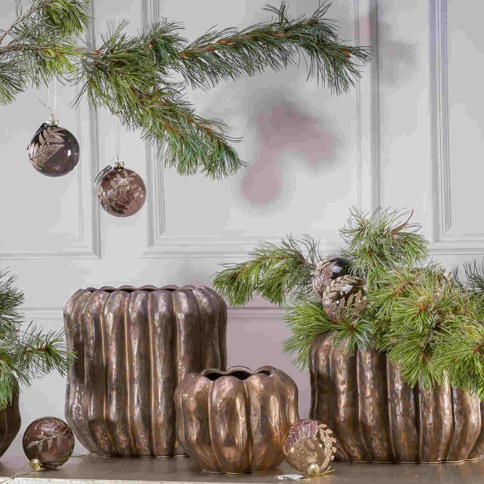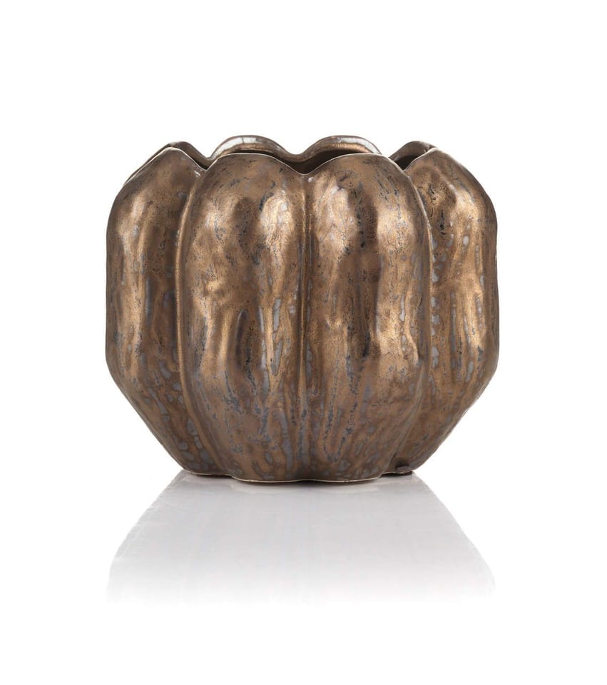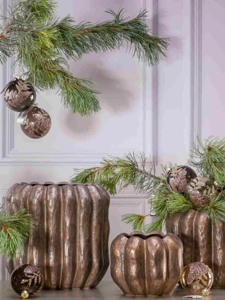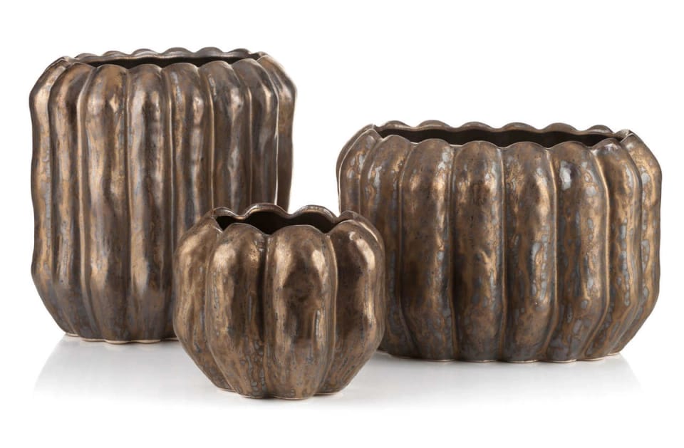 UWAGA:Efektem zamierzonym podczas produkcji osłony, jest celowe ich postarzenie, poprzez technologiczne zastosowanie bruzd, nierówności lub odprysków farb, co nie jest wadą, a nadaniem doniczkom, stylu z antycznym wykończeniem.