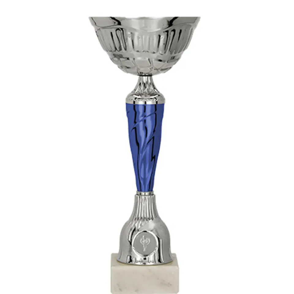 Puchar metalowy srebrno-niebieski , H-32cm, R-120mm