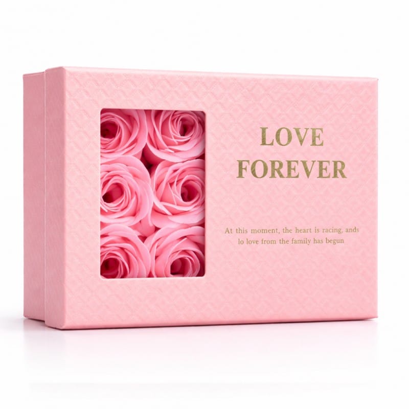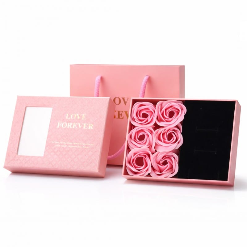 Pudełeczko na biżuterię z 6 szt. zapachowych róż mydlanych, różowe na prezent BUK28R