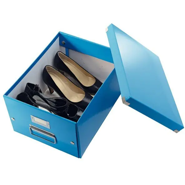 Średniej wielkości uniwersalne pudelko do przechowywania lub przenoszenia przedmiotów w formatach do A4. Wykonane z wytrzymalego kartonu. Laminowana powierzchnia i metalowe elementy narozne zapewniają solidną ochrone. Trwale metalowe uchwyty ulatwiają przenoszenie. Z ramką na etykiety do opisu zawartości. Skladane w celu zaoszczedzenia miejsca, gdy nie jest uzywane. Nowoczesne wzornictwo świetnie pasuje do kazdego biura.
