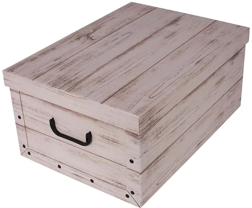 Wykonane z wysokiej jakości, wytrzymałego, kaszerowanego kartonu z połyskiem, w 100% pochodzącego z recyklingu. Sposób wykończenia kartonu pozwala na czyszczenie wilgotną ściereczką. Ścianki pudełka spięte plastikowymi nitami. Podwójny karton na ściankach z uchwytami do przenoszenia. Intuicyjny i prosty montaż. Wieko nie wymaga dodatkowego składania. Dekoracyjne pudełko z możliwością stawiania jedno na drugim, równie praktyczne w szafie, jak samodzielnie na półce lub na podłodze Pudełko w całości wykonane we Włoszech.