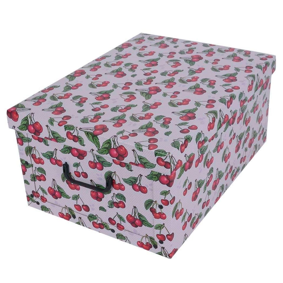 Pudełko kartonowe MAXI z nadrukiem soczystych wiśni świetnie sprawdzi się do przechowywania ubrań, dokumentów, zabawek i akcesoriów. Doskonałe do garderoby, biura, pokoju dziecięcego oraz jako stylowe opakowanie na prezent.