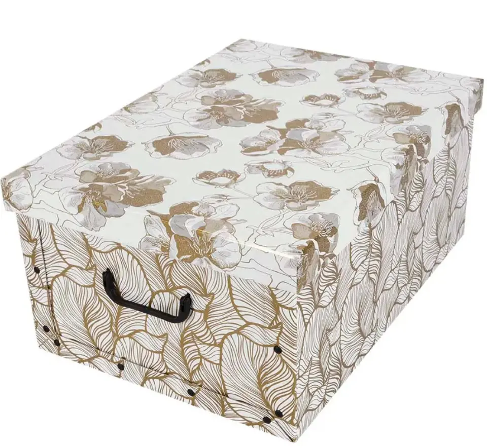 Pudełko kartonowe MAXI świetnie sprawdzi się do przechowywania ubrań, dokumentów, zabawek czy akcesoriów. Idealne do garderoby, biura, pokoju dziecięcego oraz jako estetyczne opakowanie na prezent.