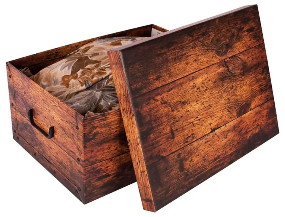 Wykonane z wysokiej jakości, wytrzymałego, kaszerowanego kartonu z połyskiem, w 100% pochodzącego z recyklingu. Sposób wykończenia kartonu pozwala na czyszczenie wilgotną ściereczką. Ścianki pudełka spięte plastikowymi nitami. Podwójny karton na ściankach z uchwytami do przenoszenia. Intuicyjny i prosty montaż. Wieko nie wymaga dodatkowego składania. Dekoracyjne pudełko z możliwością stawiania jedno na drugim, równie praktyczne w szafie, jak samodzielnie na półce lub na podłodze Pudełko w całości wykonane we Włoszech.