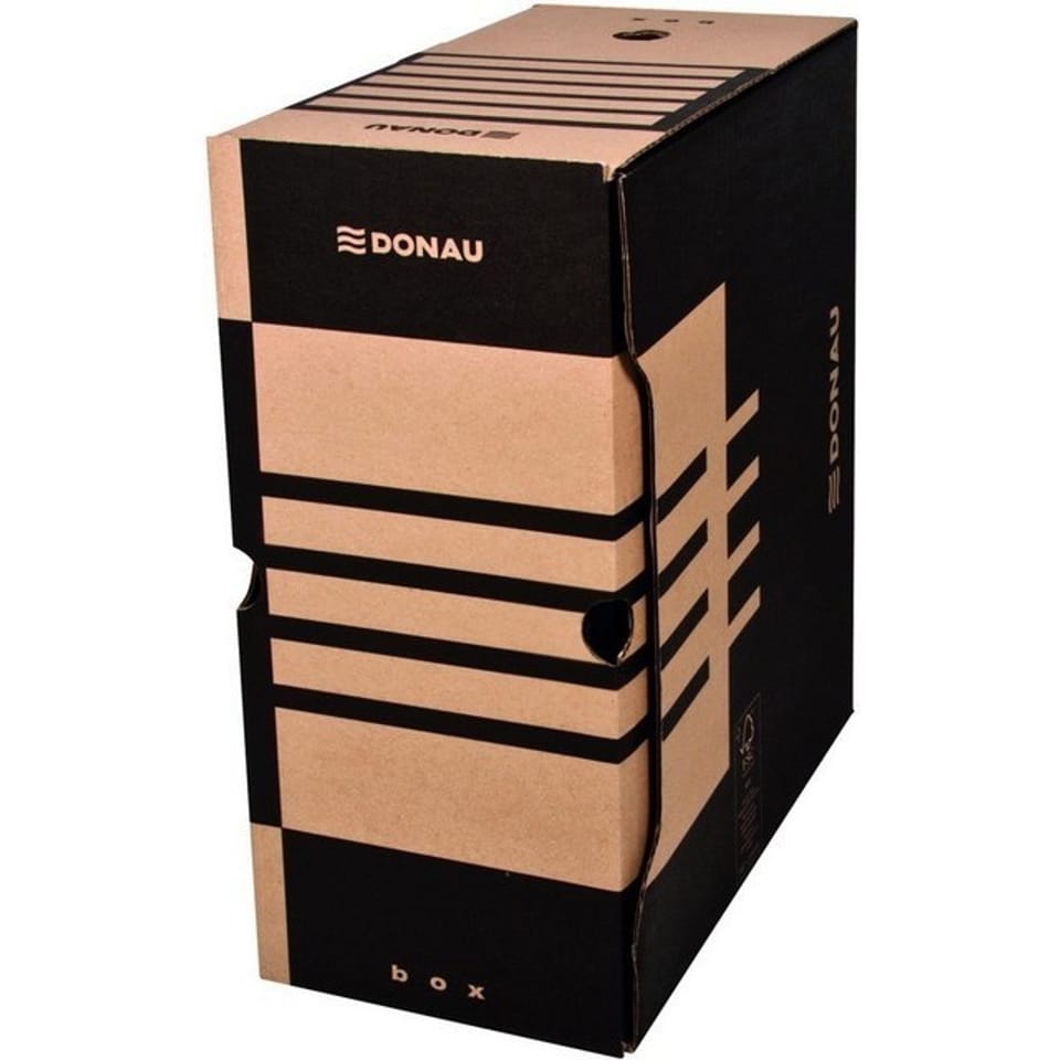 * wykonane z trójwarstwowej tektury falistej typu B, bezkwasowej (pH ok. 7,5) * posiadają certyfikat FSC, który gwarantuje, że papier pochodzi z ekologicznie zarządzanych obszarów leśnych * składane ? bardzo proste w montażu, mieszczą segregator * specjalny design umożliwia stawianie na krótszym lub dłuższym boku * 5 ścian opisowych, posiada 4 otwory: * dwa ułatwiają wyjmowanie dociążonego pudełka z pudła zbiorczego * kolejne dwa pozwalają na wkładanie/wyjmowanie zawartości bez konieczności zdejmowania pudełka z szafy/półki