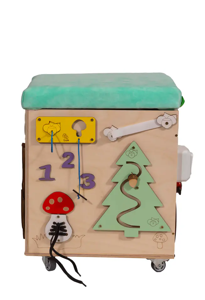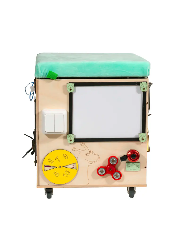 Tablica manipulacyjna – puf ze schowkiem: