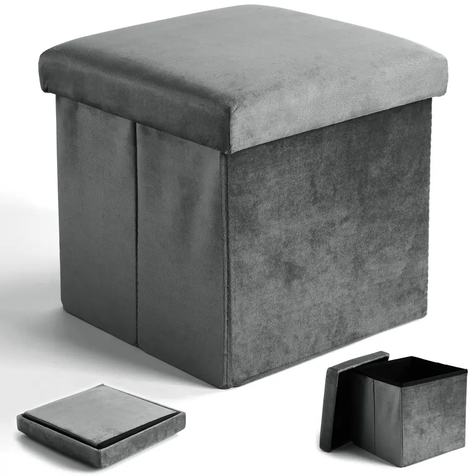 Pufa składana welurowa DIEGO grafitowy VELVET rozmiar LPrzeznaczenie: skrzynia, pojemnik, siedzisko ze schowkiem | Kolory: szary Ta składana pufa w rozmiarze L dodaje nowoczesnego charakteru wnętrzu, a dzięki jej wielu zastosowaniom jest produktem niezwykle wszechstronnym. Idealnie sprawdzi się w salonie, pokoju dziecięcym, sypialni, garderobie oraz przedpokoju, co daje wiele możliwości aranżacyjnych.Pufa ta, dzięki swojej funkcjonalności, doskonale wpisuje się w trendy. Może pełnić rolę dodatkowego siedziska, kuferka na zabawki, schowka na drobiazgi czy podnóżka. Doskonale komponuje się zarówno z małymi stolikami kawowymi, niskimi ławami do salonu, jak i z innymi meblami w pokoju dziennym czy dziecięcym.Dodatkowo, prosta konstrukcja pufy sprawia, że jest ona bardzo stabilna, co jest kolejną zaletą tego produktu.Cała pufa zostala obszyta bardzo miłą w dotyku, elegancką welurową tapicerką. Wymiary produktuWysokość: 38 cmSzerokość: 38 cmGłębokość: 38 cmWymiary wewnętrzne schowka: Szerokość: 33 cm x Głębokość: 33 cm x Wysokość: 33 cmSiedzisko: płyta wiórowa, pianka, tapicerka w kolorze szarymMaksymalne obciążenie siedziska: 80 kgPojemność: 36 litrów Informacje dodatkowePrzedstawione kolory należy traktować poglądowo - mogą odbiegać od rzeczywistych ze względu na różne ustawienia monitorów oraz proces obróbki zdjęć. Rzeczywiste wymiary mogą się różnić od podanych wyżej. Tolerancja błędów może wynosić +/- 5%.Marka:GockowiakKod EAN:5905523060348Kolor:szaryWysokość: 38 cmSzerokość:38 cmGłębokość:38 cmSkładana:tak