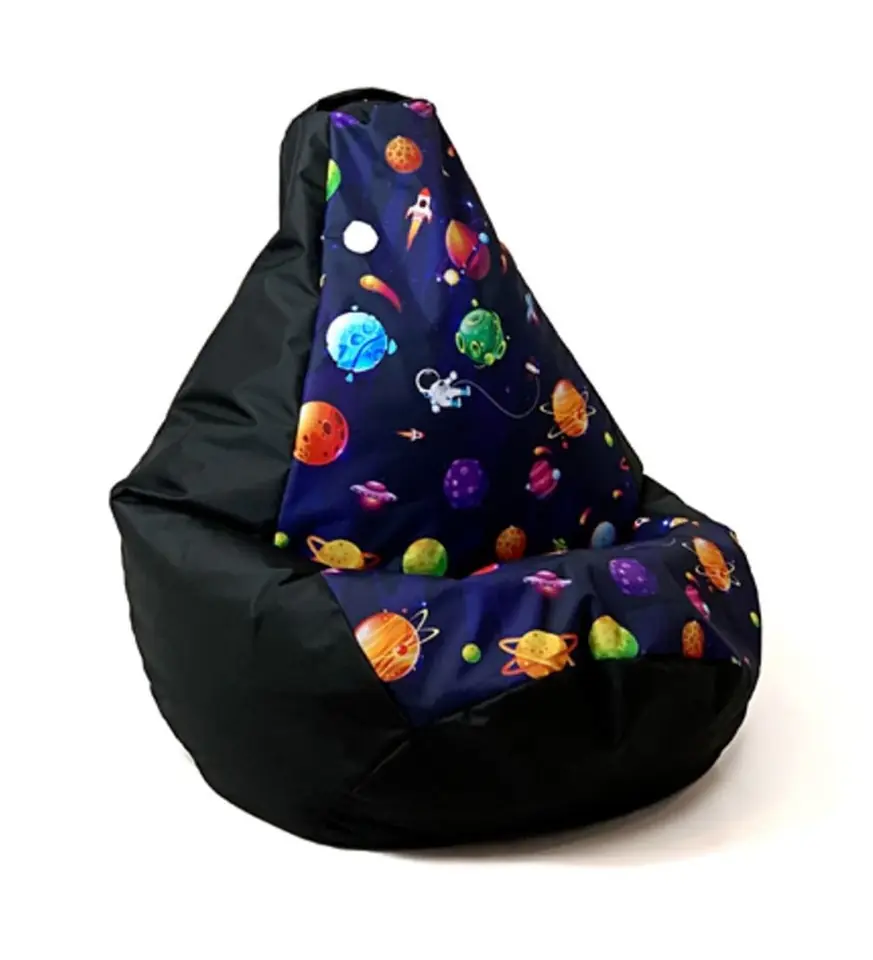 Pufa worek sako GRUSZA DRUK czarny-planety L 105x80