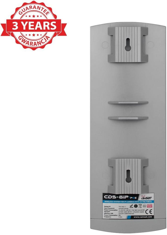 Bezprzewodowy moduł CDS-6IP-3POE do transmisji wideo dla megapikselowych kamer i rejestratorów IP Full HD / IP 4KUrządzenie jest nadajnikiem jak i odbiornikiem w jednym module (transceiver)Szyfrowany 64/128/152 bitowym kodem identyfikacyjnym gwarantuje zabezpieczenie przed podglądem osób trzecich