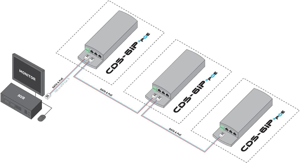 Wbudowany switch PoE umożliwia zasilenie maksymalnie 3 urządzeń zgodnie ze standardem IEEE 802.3 af/at, lub Passive PoE 48VMożliwe jest również zasilenie samego urządzenia CDS-6IP-3POE poprzez Passive PoE lub za pomocą switcha dostarczającego zasilanie zgodnie ze standardem IEEE 802.3 at