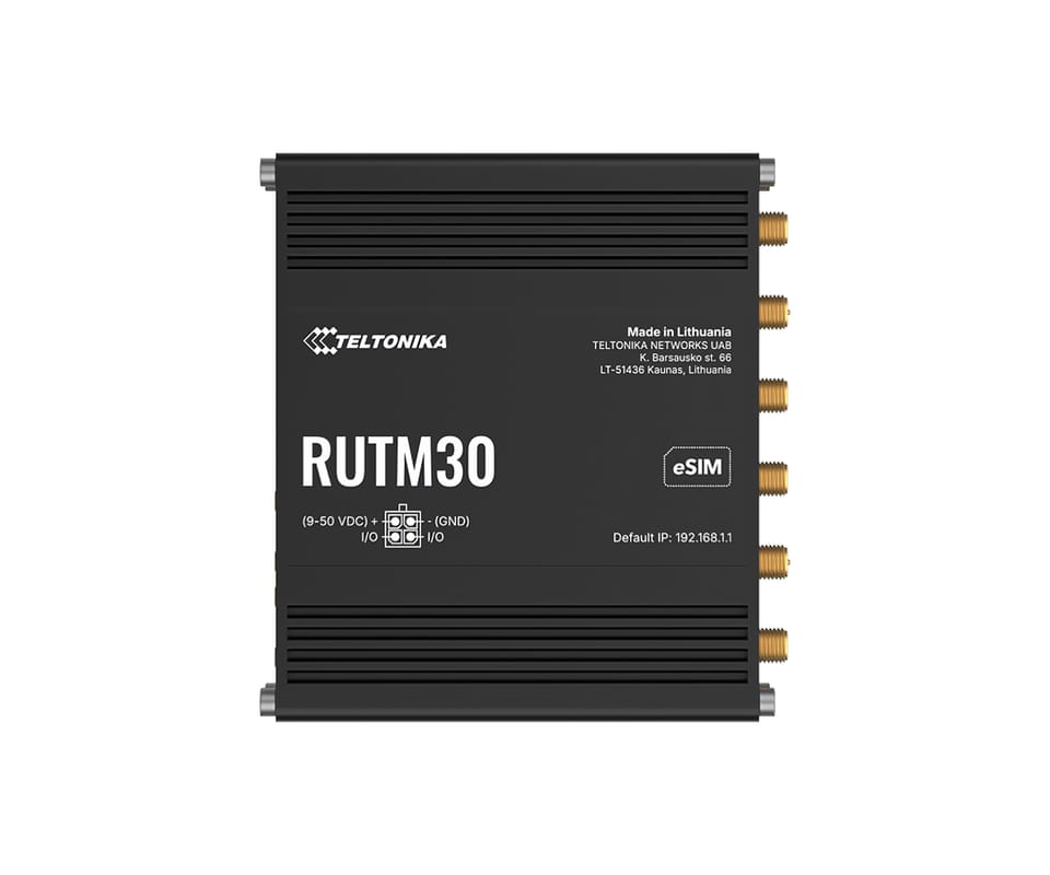 RUTM30 to niezawodny router 5G z obsługą dwóch kart SIM, szybkim Wi-Fi 5 i portem USB, stworzony do wymagających zastosowań przemysłowych i mobilnych, gdzie liczy się maksymalna wydajność i bezpieczeństwo sieci.