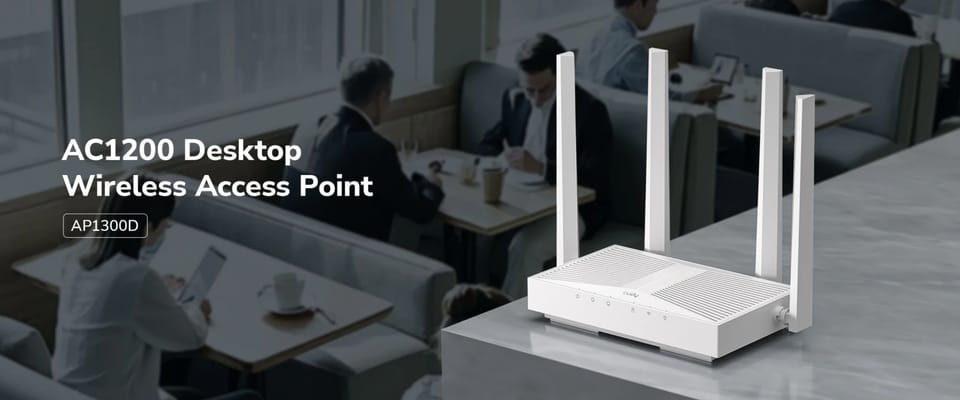 Cudy AP1300D to kompaktowy punkt dostępowy do zastosowań biurowych i komercyjnych (np. hotel, studio), który zapewnia stabilną sieć dwuzakresową Wi-Fi 2.4/5 GHz w klasie AC1200 i szerokie pokrycie dzięki 4 antenom. Urządzenie można postawić na biurku lub zamontować na ścianie, a zasilanie przez PoE albo zasilacz ułatwia instalację w miejscach, gdzie nie chcesz prowadzić dodatkowych przewodów. Funkcja Multi-SSID pozwala wygodnie rozdzielić sieć na kilka nazw, np. dla gości i pracowników, co pomaga lepiej kontrolować dostęp.