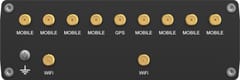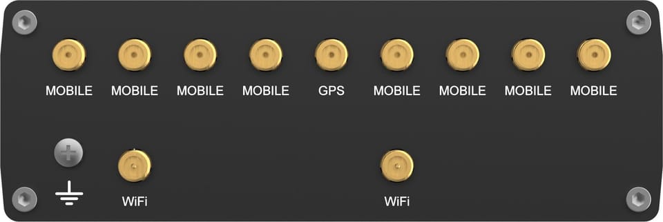 | Typ anteny: | 2 x Antena dookólna Wi-Fi (złącze SMA-RP), 8 x Antena dookólna 5G/4G (złącze SMA), 1 x Antena dookólna GNSS (złącze SMA) |