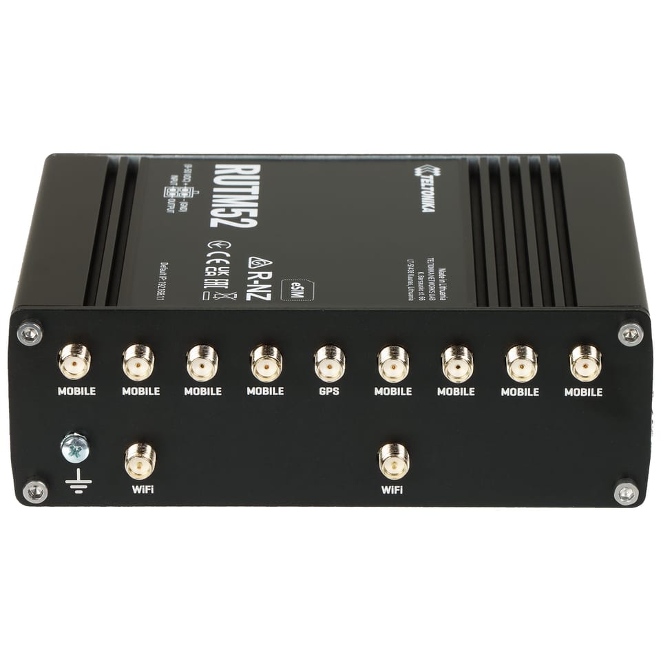 | Wybrane cechy: | Dual SIM, eSIM 2 jednocześnie działające modemy 5G LTE z funkcją równoważenia obciążenia MU-MIMO - funkcja transmisji wieloantenowej, pozwalająca na zwiększenie przepustowości i niezawodności połączenia z klientem sieci Wsparcie dla technologii Mesh Kontrola funkcji szybkiego roamingu - zgodnie ze standardem IEEE 802.11r (tylko w przypadku zastosowania punktów dostępowych obsługujących tą funkcję) Płynny roaming - Funkcja roamingu 802.11k/v umożliwia automatyczne przełączanie się klientów pomiędzy punktami dostępowymi, które zapewniają największe prędkości, gdy użytkownik zmienia swoje położenie - bez przerywania wykonywanych działań, nawet takich, które są wrażliwe na zakłócenia, w tym VoIP czy wideokonferencji., Zgodność z protokołem Modbus, DLMS, DNP3, OPC UA Auto detekcja MDI/MDI-X - automatycznie wykrywa tryb transmisji danych Routing statyczny / dynamiczny Wsparcie dla technologii VoIP, Możliwość pracy jako Hotspot Podgląd topologii oraz stanu sieci Obsługa WMM (mechanizm QoS standardu 802.11e) Obsługa DHCP Relay Obsługa VLAN Sieci VPN: IPsec VPN, L2TP VPN, PPTP VPN, Open VPN Zgodność z protokołem MQTT SNMP v1/v2/v3/Trap Kopia zapasowa połączenia WAN - dzięki w pełni funkcjonalnemu portowi WAN / LAN można korzystać z różnych typów połączeń zapasowych, w tym modemów kablowych, światłowodowych i DSL Współpraca z systemami IoT (Internet of Things), Konfiguracja za pomocą aplikacji Teltonika RMS Wytrzymała aluminiowa obudowa Odporność na wstrząsy Zaprojektowany do zastosowań przemysłowych w szerokim zakresie temperatur. Przycisk RESET 4-pinowe przemysłowe gniazdo zasilania, Szeroki zakres obsługiwanych napięć zasilania, 1 wejście / wyjście cyfrowe - możliwość ustawienia określonych warunków we/wy w celu zainicjowania zdarzenia Uziemienie Klasa szczelności : IP30 W zestawie kabel Ethernet |