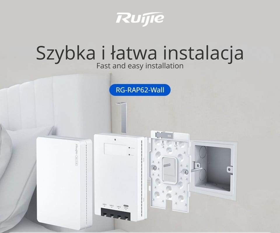 | Wybrane cechy: | Montaż w puszkach podtynkowych Ø60mm Wsparcie dla technologii Reyee Mesh OFDMA Funkcje optymalizacyjne oraz diagnostyczne realizowane w oparciu o AI Beamforming (TxBF) - technologia pozwalająca ukształtować wiązkę fal radiowych w celu polepszenia jakości połączenia z urządzeniami klienckimi znajdującymi się dalej od źródła sygnału WMM (Wi-Fi Multimedia) Równoważenie obciążenia pasma Łatwy i jednolity system zarządzania dla wielu urządzeń Intuicyjna instalacja i konfiguracja wielu zaawansowanych funkcji |