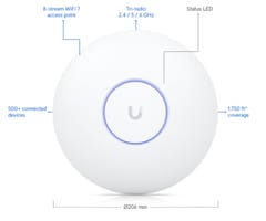 Urządzenie zapewnia zasięg do 160 m² (1750 ft²) i obsługuje ponad 500 podłączonych urządzeń. Zasilane przez PoE, posiada uplink 2,5 GbE, co czyni go wszechstronnym i wydajnym rozwiązaniem sieciowym.