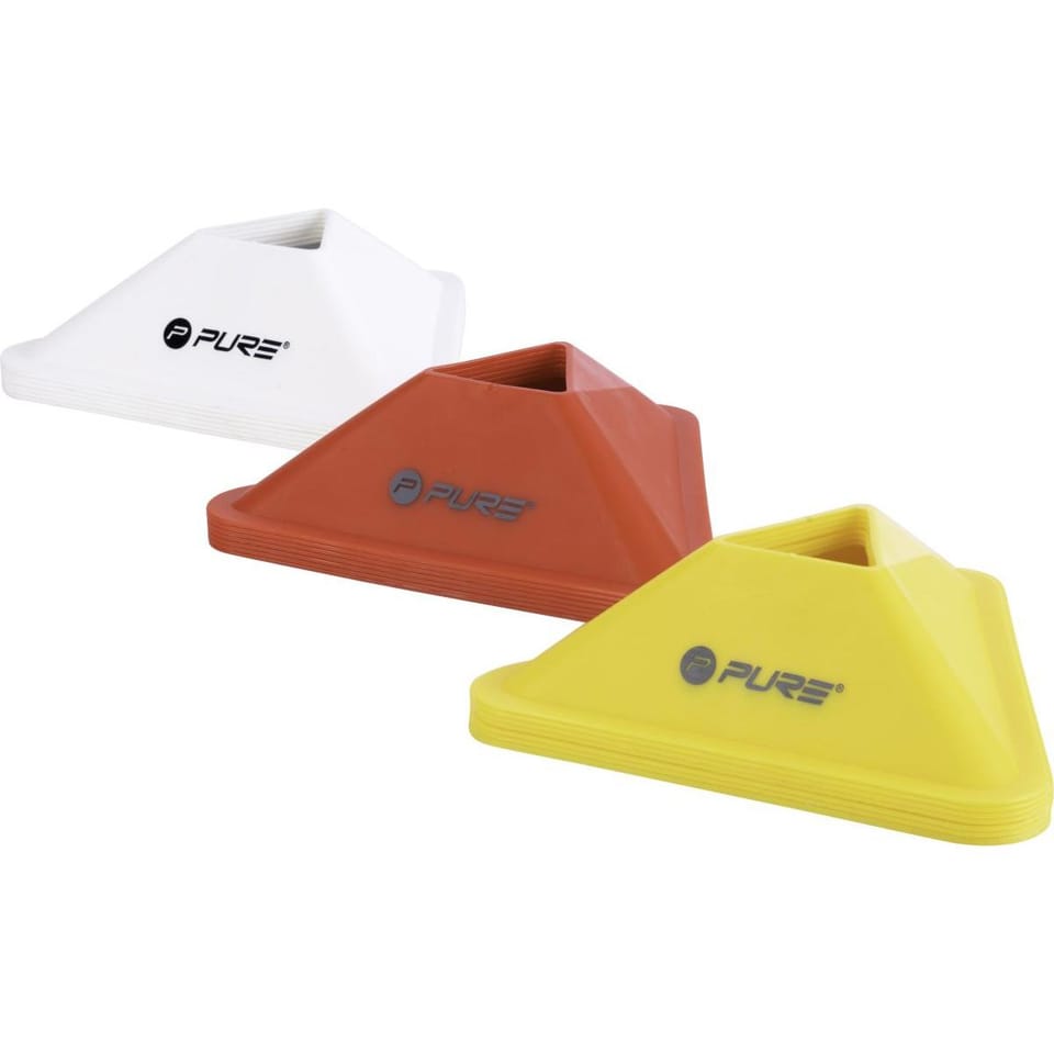 - w zestawie 20 znaczników w 3 różnych kolorachwykonane z trwałego mocnego materiałukontrastowa kolorystyka zwiększy ich widoczność na torzespecjalna budowa pozwala układać jeden pachołek na drugiidealne do poprawy kondycji, szybkości pracy nóg i do slalomówdo użytku wewnątrz i na zewnątrz pomieszczeńnarzędzie szkoleniowe w każdym wieku