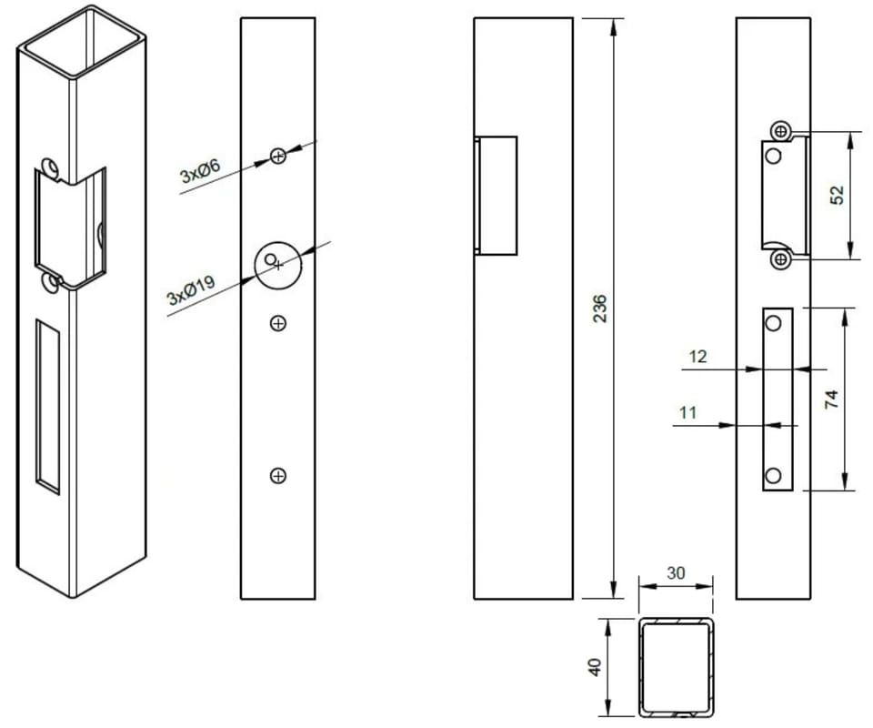 | Wymiary: | 30 x 236 x 40 mmGrubość blachy 1.5 mm |