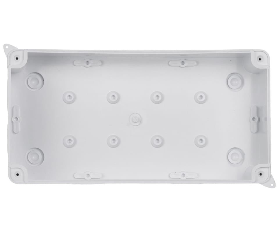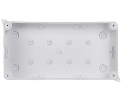 Natynkowa puszka odgałęźna PKRT-200X100 spełnia wymogi klasy szczelności IP65. Po bokach puszki zaznaczone zostały miejsca do samodzielnego wycięcia przepustów kablowych.
